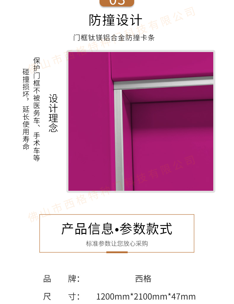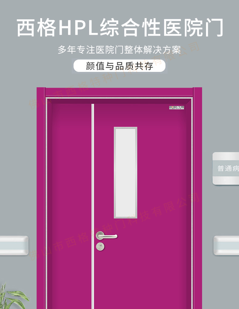 產品簡介:chnsige西格特種門,專業生產病房門,醫院病房門,醫院病房木門,病房木門,木質病房門,鋼質病房門,多鐘款式、顏色,尺寸可定制。